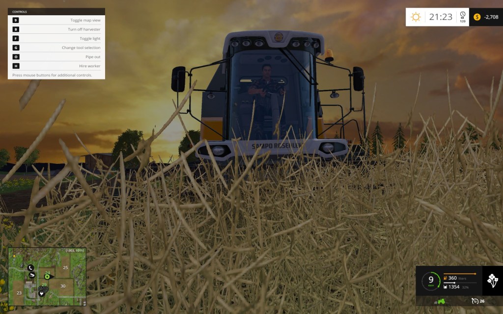 Your time with Farming Simulator 15 starts like it did in 13, with you being unceremoniously dropped into middle of a farm, your farm. This time however you are given a choice of 2 open world maps to begin your career on, the American styled Westbridge Hills, replete with white picket fences and iconic red barns or the Nordic themed Bjornholm, filled with rustic log cabins and forest areas. While it has no real effect on the gameplay, its nice to be given a choice of backdrops even though, at times, the two environments can be indistinguishable. You’re also bestowed some farming machinery to compliment your newly acquired farmland, which means you’re now ready to set out on your journey to become the agricultural kingpin you’ve always dreamed of. Unsurprisingly the core gameplay remains unchanged from the previous game, you’ll be spending the bulk of your first few hours continually cultivating your field in preparation to receive your seed, followed by a good seeding and then a harvesting of the crops, eventually storing the results in your silo or selling the spoils to various locations across the land. The majority of the activities play out in much the same way and while it may not be for everyone and can occasionally get repetitive or feel mundane, there is a calming, relaxing and charming fun (yes, fun!) to be had with it.