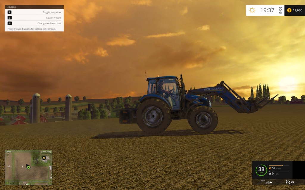 Having no real say in the machines you start with, initially you will be forced to focus on certain crop types until you can afford to buy the implements specific to other types. Given the number of options available to make money, it seems odd to start every game with the same base set of equipment, it would have been nice to have been given a budget and allocate it to whatever you want to start with (you can sell your starting equipment, albeit at half its value) it seems like a missed opportunity considering it was the same situation last time around. While a set start can make it feel as though a lot of content is locked out until you put the time in to afford them, it presents the core progression system of the game that essentially boils down to ‘make money to spend money to make money’, which to be fair is basically how a farm works. This does lead to a lack of immediacy, for those looking for instant gratification you wont find it here, its a slow cook, rewarding those who are willing to ‘grind’ to get better equipment. With some commitment and some serious agronomic skills, you’ll find yourself acquiring more tools with which to derive some more cash, these include different attachments to adorn to your tractors, telehandlers/forklifts to complete delivery missions that crop up from time to time(the frequency of which can be changed in the options), cows and sheep for animal husbandry, placeable objects like turbines and bee hives, in fact far too many things to mention in this review(over 140 items can be purchased, hopefully more to come with the ‘out of the box’ mod support). Everything you own on your farm put’s a drain on the money in your account, equipment and items have maintenance costs, animals have upkeep costs, hired workers require a salary, this adds an interesting management angle to the game. With both money and time management being integral to the success of your farm you will find yourself planning your next purchases and acquisitions more and more, deciding on crop rotations as a couple of examples, these choices a dash of strategy to proceedings. While not exactly deep it does exemplify that some thought can be put into decisions beyond “must buy bigger badder tractor”.
